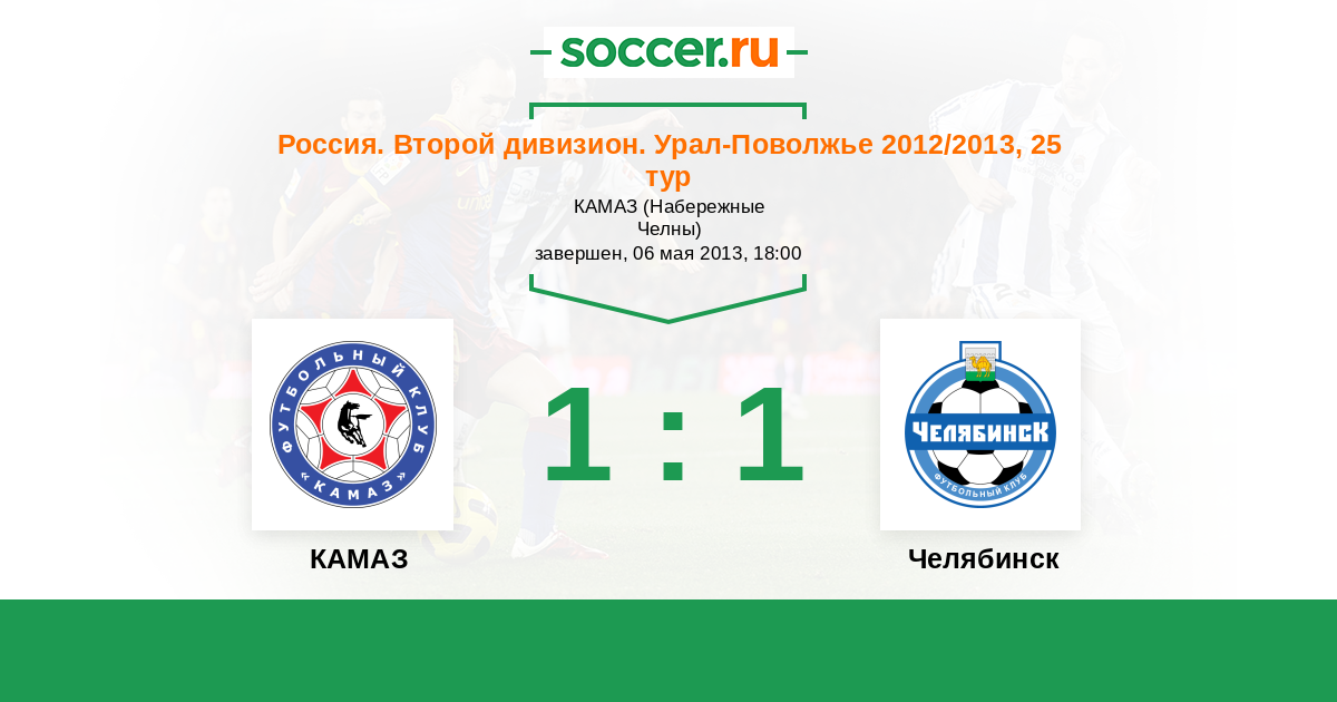 Россия. Вторая лига. Группа 4 05.09.2012 Челябинск Логотип футбольный клуб Челябинск 2:1 Логотип футбольный клуб КАМАЗ (Набережные Челны) КАМАЗ