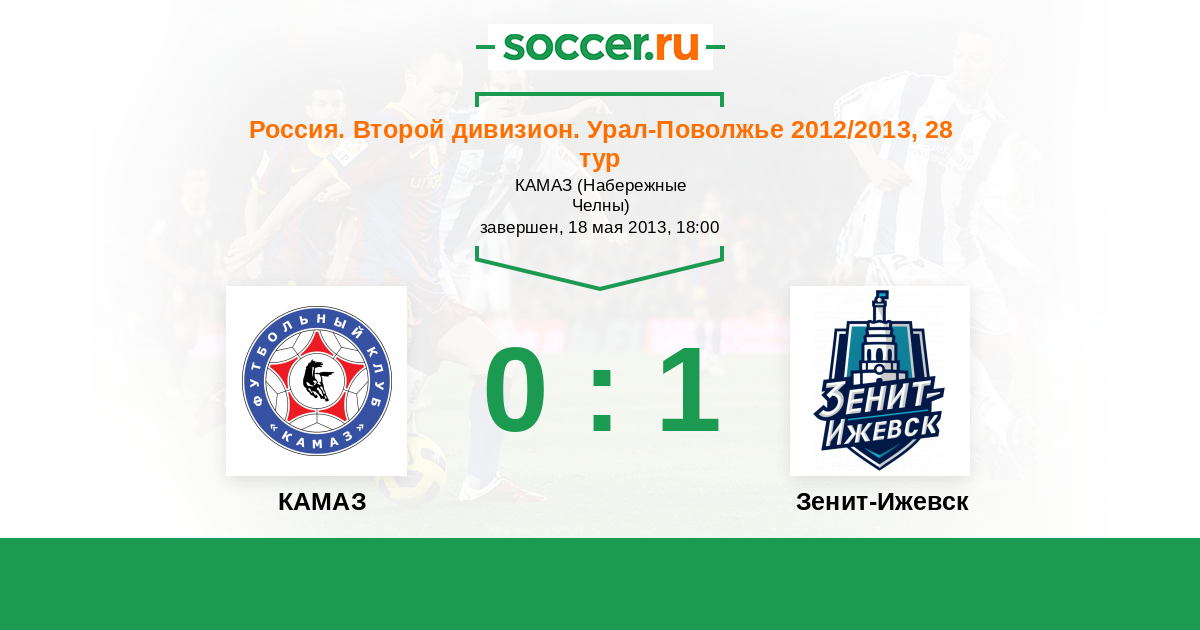 Россия. Вторая лига. Группа 4 26.07.2013 КАМАЗ Логотип футбольный клуб КАМАЗ (Набережные Челны) 0:2 Логотип футбольный клуб Зенит-Ижевск Зенит-Ижевск