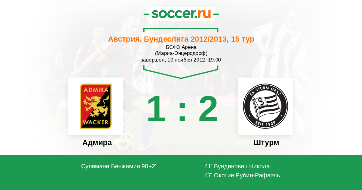 Протокол матча Адмира против Штурм