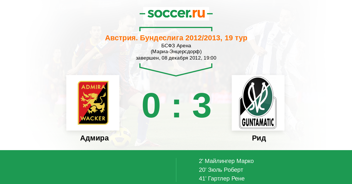 Протокол матча Адмира против Рид