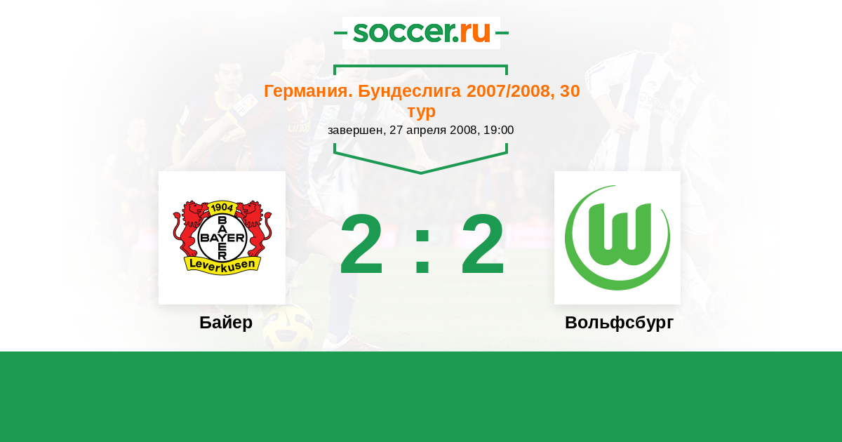 Германия. Бундеслига 31.10.2008 Байер Логотип футбольный клуб Байер (Леверкузен) 2:0 Логотип футбольный клуб Вольфсбург Вольфсбург
