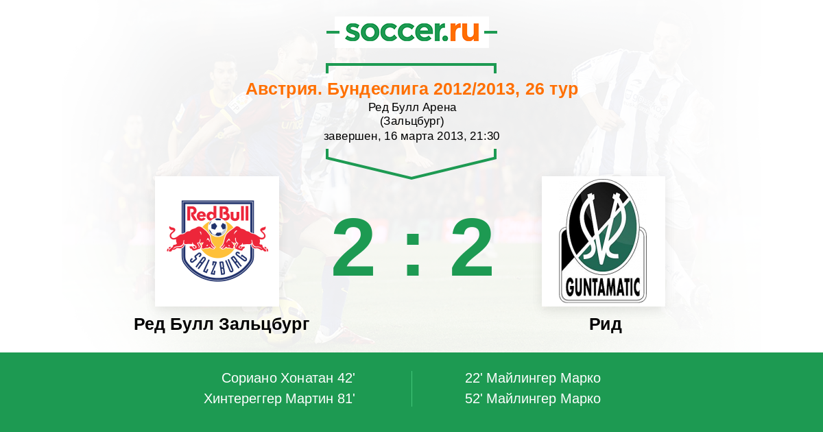 Протокол матча Ред Булл Зальцбург против Рид