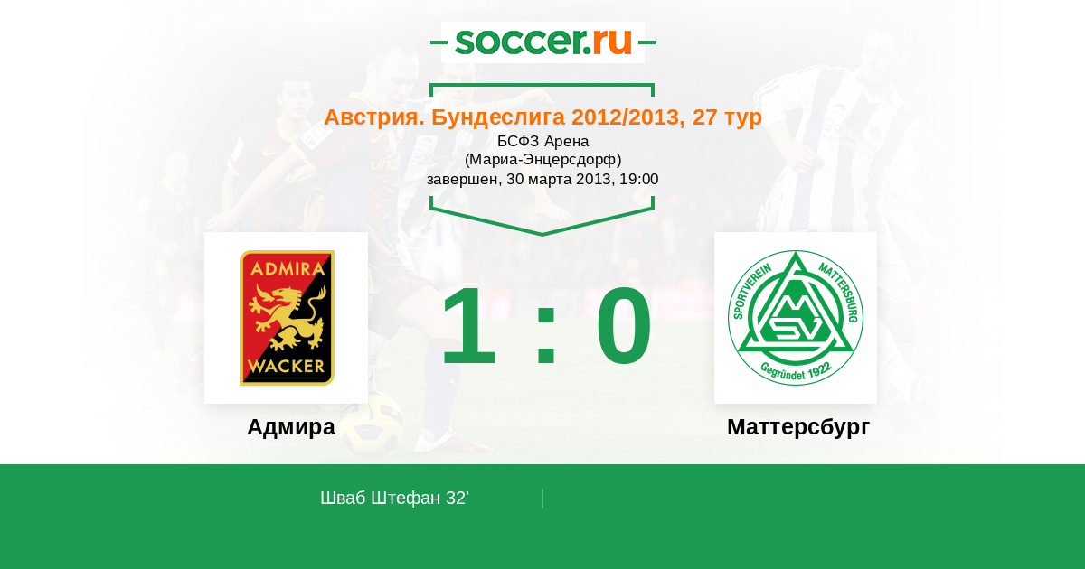 32' (1:0) Шваб Штефан (22)