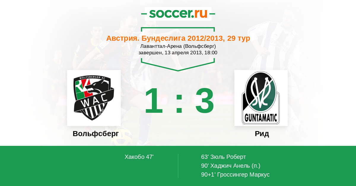 Протокол матча Вольфсберг против Рид