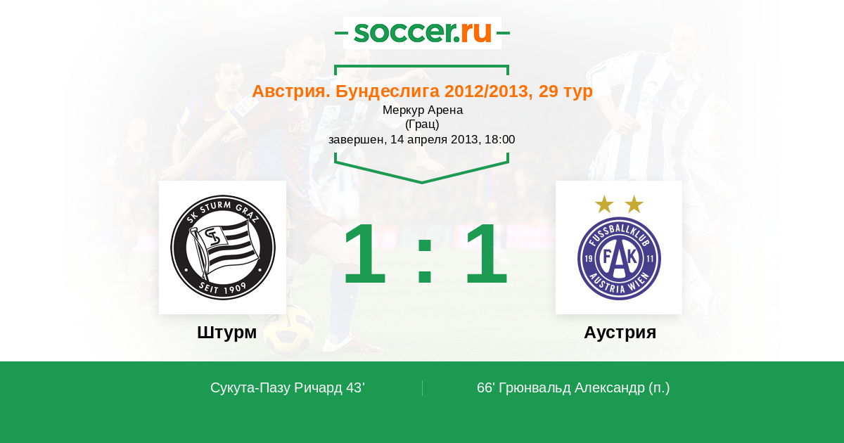 Протокол матча Штурм против Аустрия