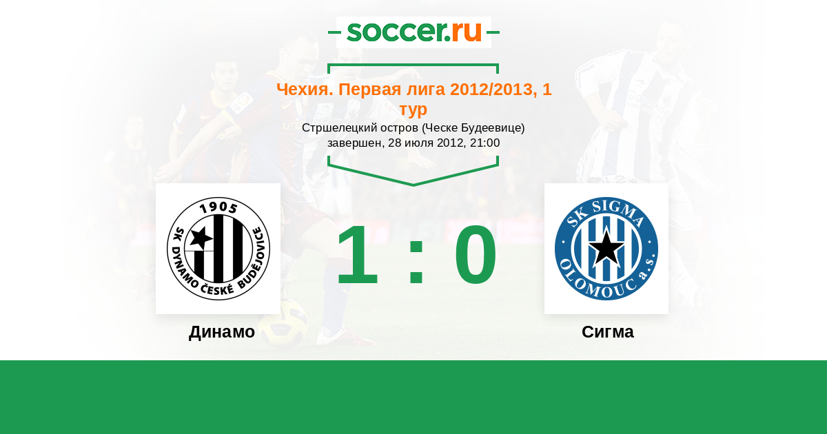 Чехия. Первая Лига 01.06.2013 Сигма Логотип футбольный клуб Сигма (Оломоуц) 1:0 Логотип футбольный клуб Динамо (Ческе-Будеевице) Динамо