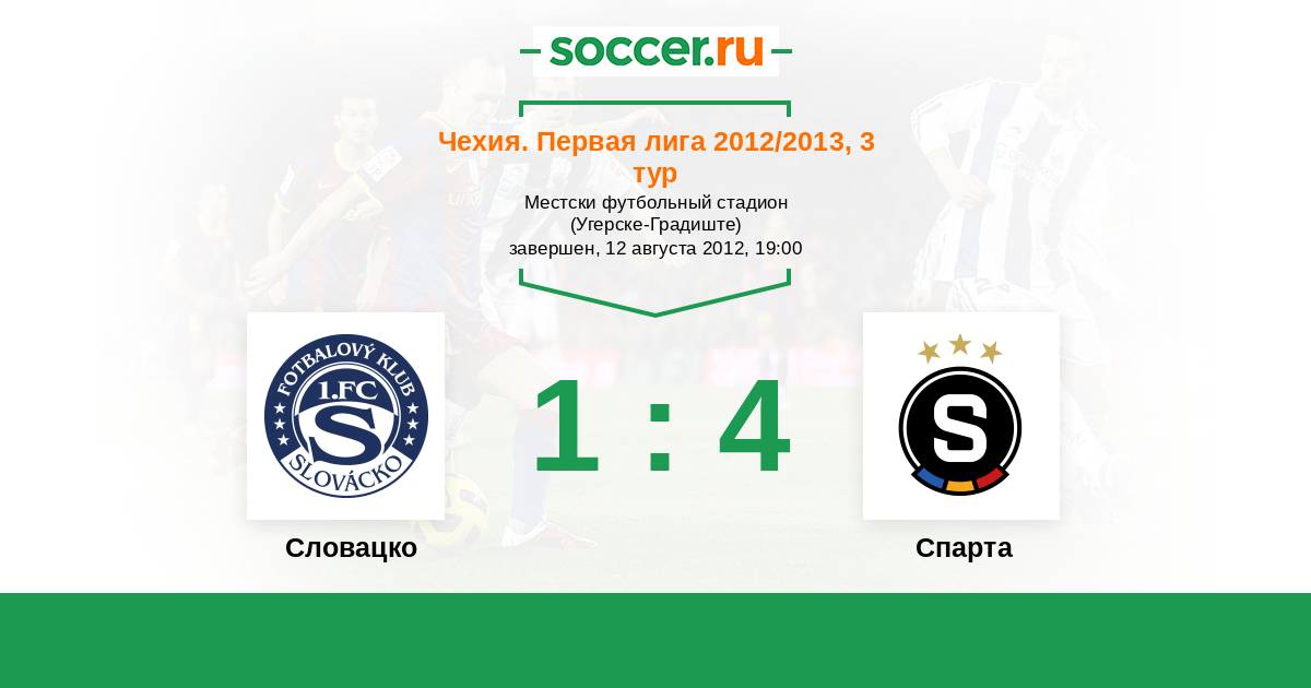 Чехия. Первая Лига 14.08.2011 Словацко Логотип футбольный клуб Словацко (Угерске-Градиште) 0:2 Логотип футбольный клуб Спарта (Прага) Спарта