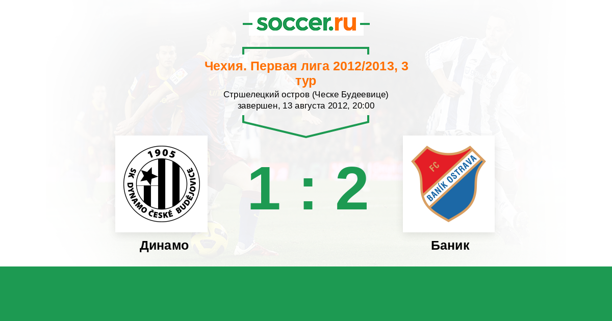 Чехия. Первая Лига 10.03.2012 Баник Логотип футбольный клуб Баник (Острава) 1:1 Логотип футбольный клуб Динамо (Ческе-Будеевице) Динамо