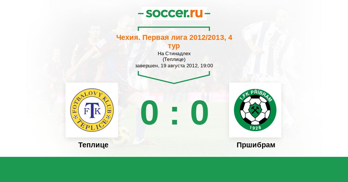 Чехия. Первая Лига 12.03.2012 Пршибрам Логотип футбольный клуб Пршибрам 0:0 Логотип футбольный клуб Теплице Теплице
