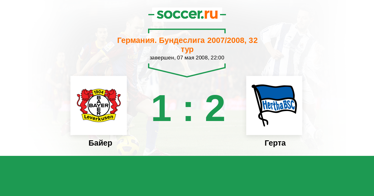 Германия. Бундеслига 12.05.2007 Герта Логотип футбольный клуб Герта (Берлин) 2:3 Логотип футбольный клуб Байер (Леверкузен) Байер