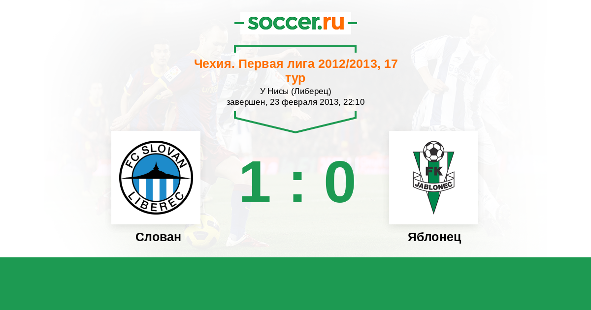 Чехия. Первая Лига 21.03.2014 Слован Логотип футбольный клуб Слован (Либерец) 3:0 Логотип футбольный клуб Яблонец (Яблонец-над-Нисоу) Яблонец