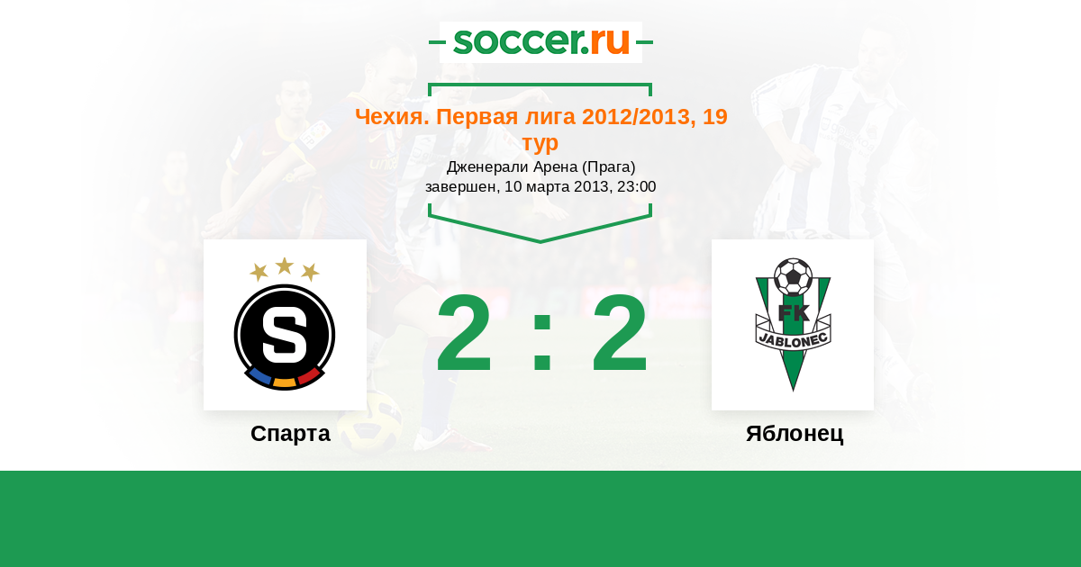 Чехия. Первая Лига 11.09.2010 Спарта Логотип футбольный клуб Спарта (Прага) 1:0 Логотип футбольный клуб Яблонец (Яблонец-над-Нисоу) Яблонец