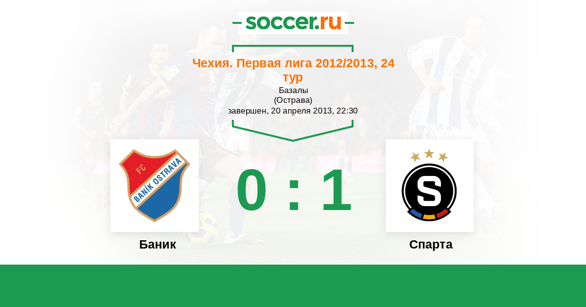 Чехия. Первая Лига 02.05.2010 Баник Логотип футбольный клуб Баник (Острава) 1:1 Логотип футбольный клуб Спарта (Прага) Спарта