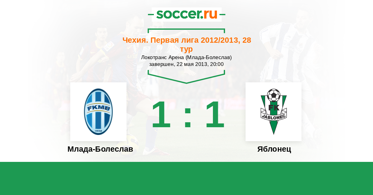 Чехия. Первая Лига 12.05.2012 Млада-Болеслав Логотип футбольный клуб Млада-Болеслав 3:0 Логотип футбольный клуб Яблонец (Яблонец-над-Нисоу) Яблонец
