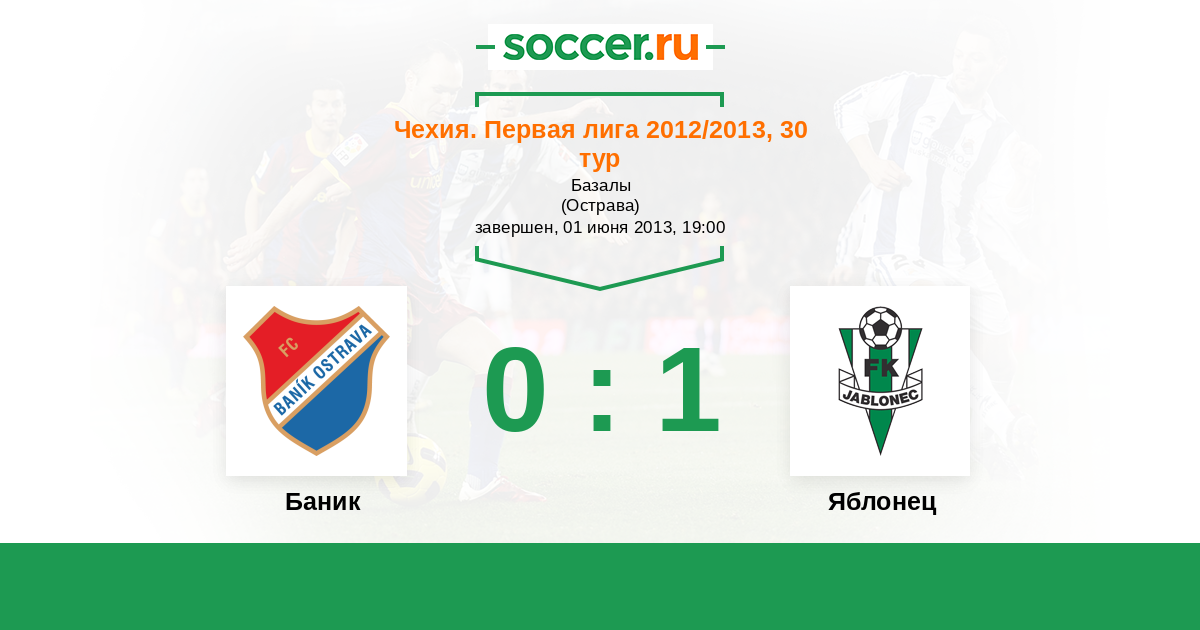 Чехия. Первая Лига 12.08.2013 Баник Логотип футбольный клуб Баник (Острава) 0:4 Логотип футбольный клуб Яблонец (Яблонец-над-Нисоу) Яблонец