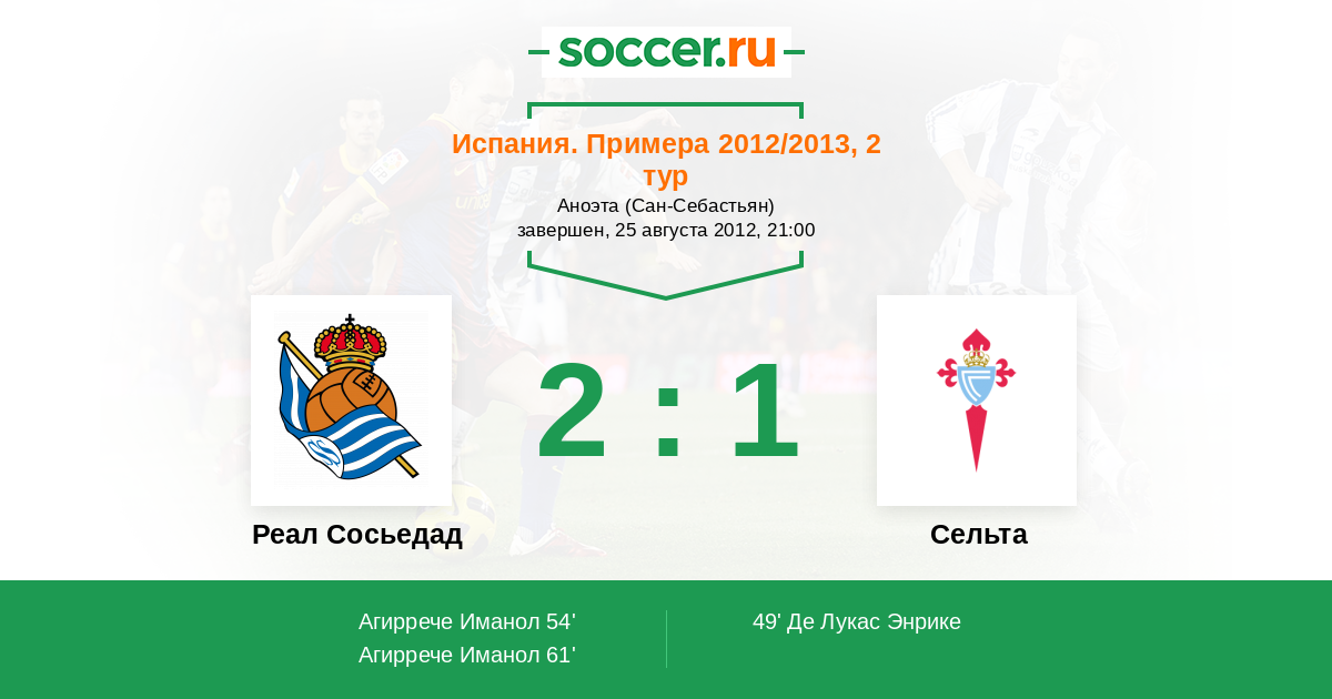 49' (0:1) Де Лукас Энрике (22) (Аспас Яго (10))