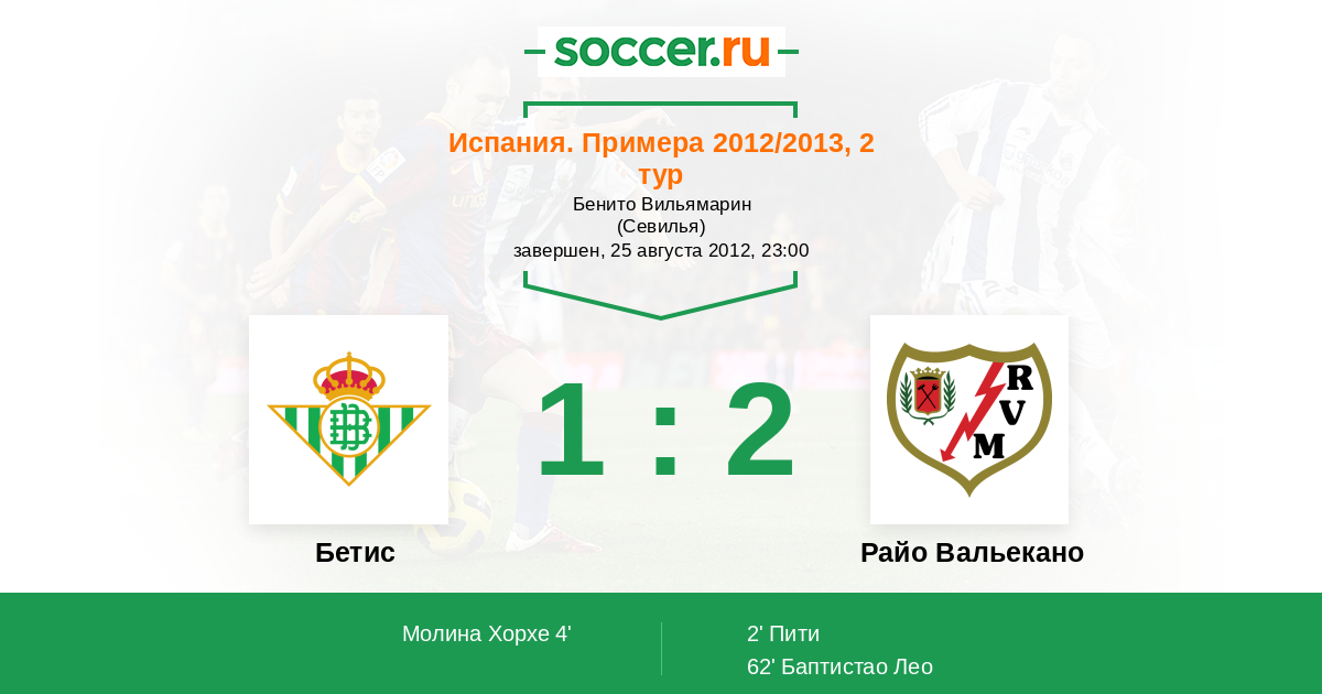 Протокол матча Бетис против Райо Вальекано