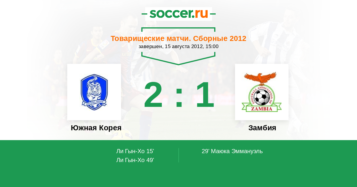 Протокол матча Южная Корея против Замбия
