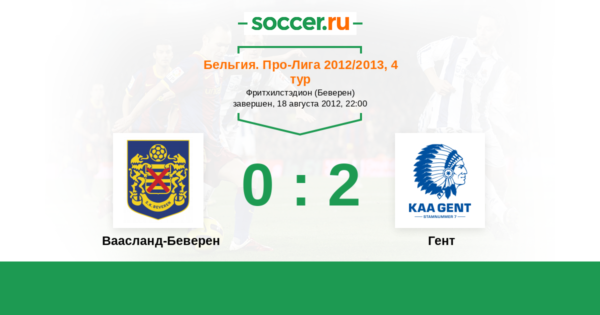 Бельгия. Про-Лига 08.12.2012 Гент Логотип футбольный клуб Гент 0:2 Логотип футбольный клуб Ваасланд-Беверен Ваасланд-Беверен