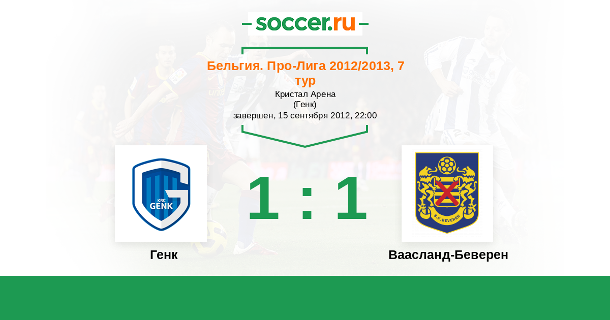 Бельгия. Про-Лига 22.09.2013 Ваасланд-Беверен Логотип футбольный клуб Ваасланд-Беверен 0:0 Логотип футбольный клуб Генк Генк