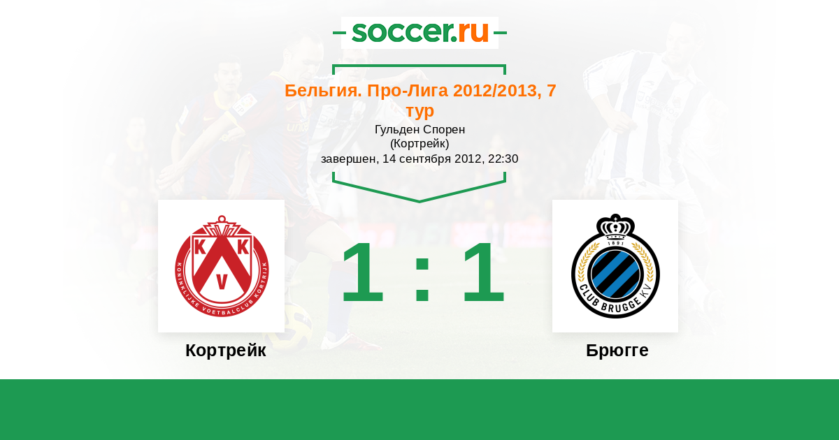 Бельгия. Про-Лига 21.09.2014 Брюгге Логотип футбольный клуб Брюгге 5:0 Логотип футбольный клуб Кортрейк Кортрейк