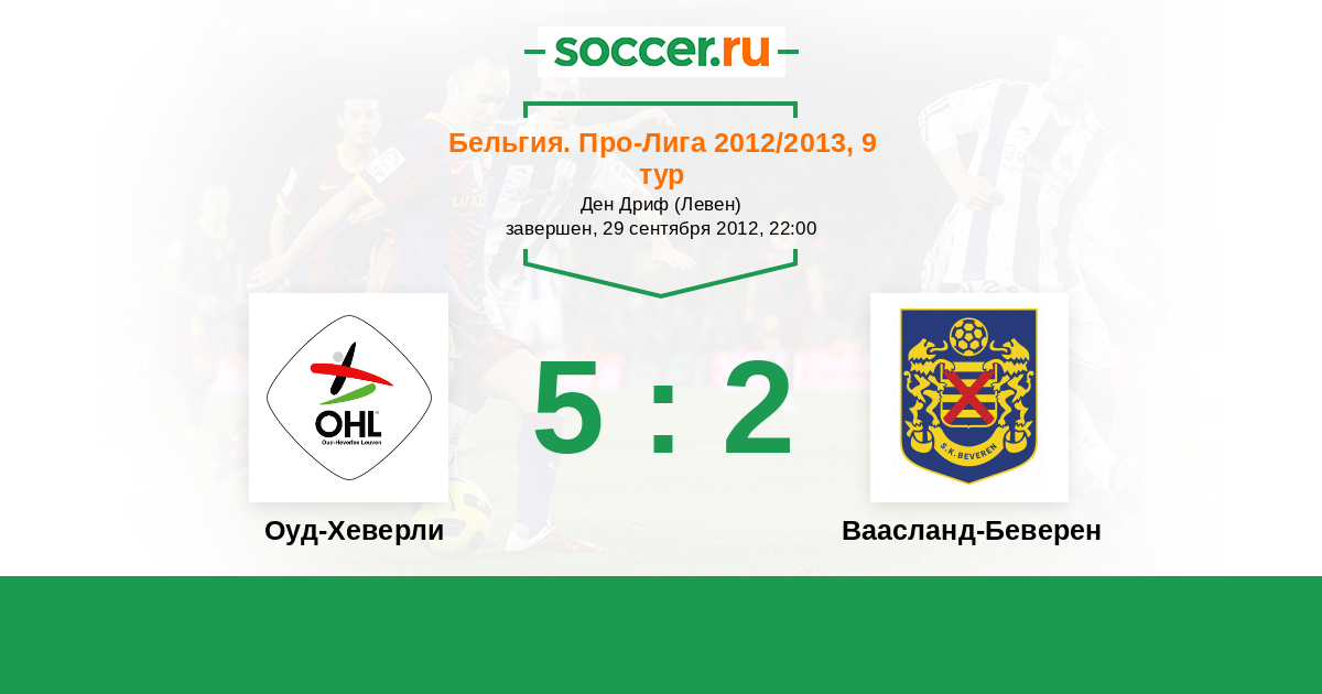 Бельгия. Про-Лига 19.10.2013 Оуд-Хеверли Логотип футбольный клуб Оуд-Хеверли (Левен) 4:2 Логотип футбольный клуб Ваасланд-Беверен Ваасланд-Беверен