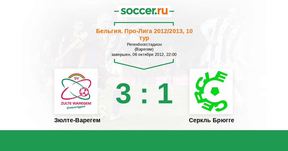 Бельгия. Про-Лига 19.10.2013 Серкль Брюгге Логотип футбольный клуб Серкль Брюгге 1:1 Логотип футбольный клуб Зюлте-Варегем Зюлте-Варегем