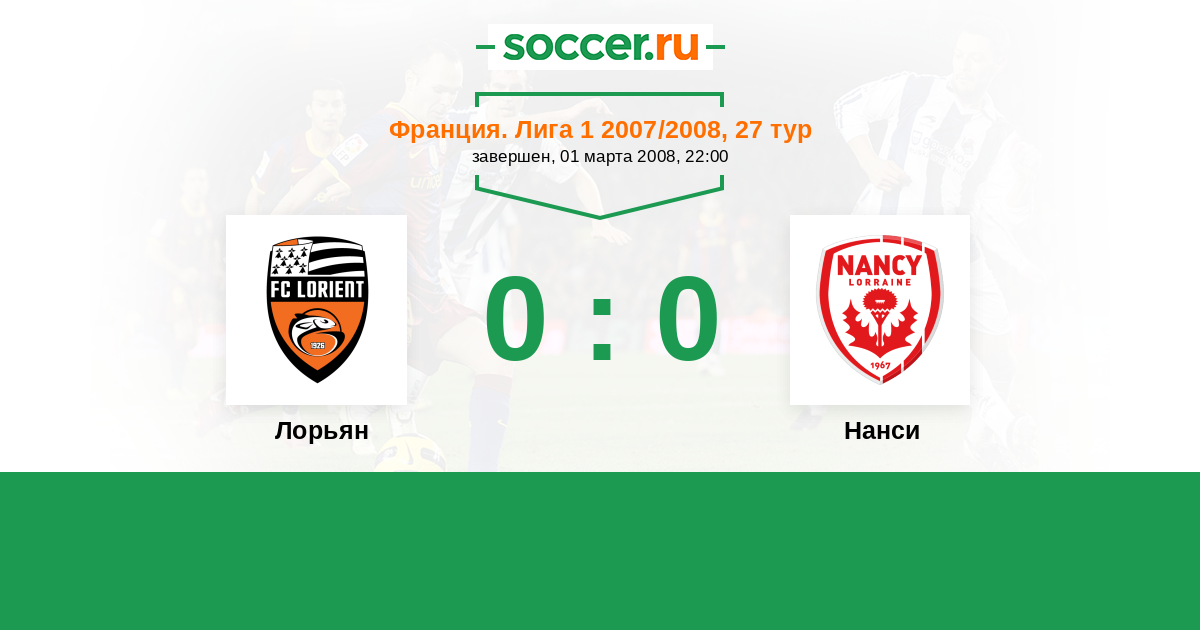 Франция. Лига 1 07.04.2007 Нанси Логотип футбольный клуб Нанси 0:1 Логотип футбольный клуб Лорьян Лорьян