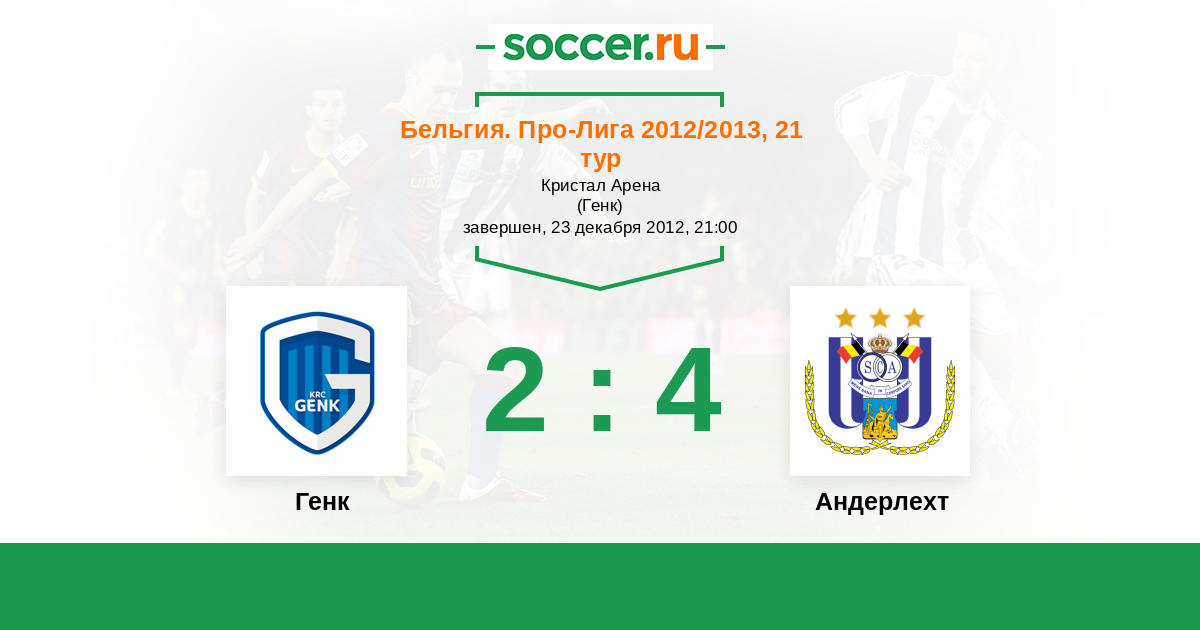 Бельгия. Про-Лига 05.02.2012 Андерлехт Логотип футбольный клуб Андерлехт (Брюссель) 4:2 Логотип футбольный клуб Генк Генк