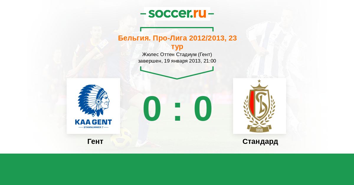 Бельгия. Про-Лига 21.09.2012 Стандард Логотип футбольный клуб Стандард (Льеж) 1:2 Логотип футбольный клуб Гент Гент