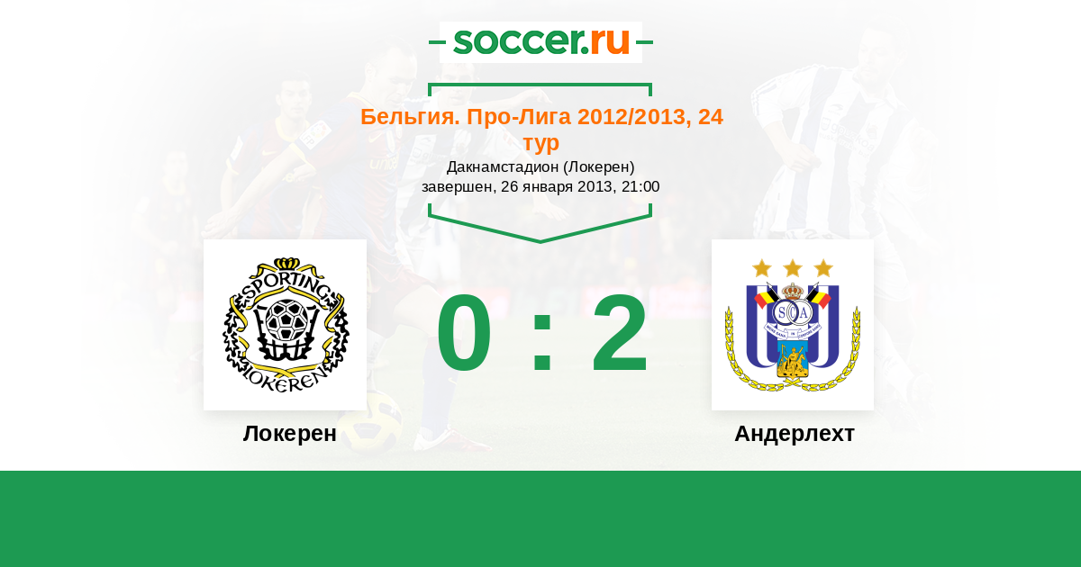 Бельгия. Про-Лига 29.09.2012 Андерлехт Логотип футбольный клуб Андерлехт (Брюссель) 3:0 Логотип футбольный клуб Локерен Локерен