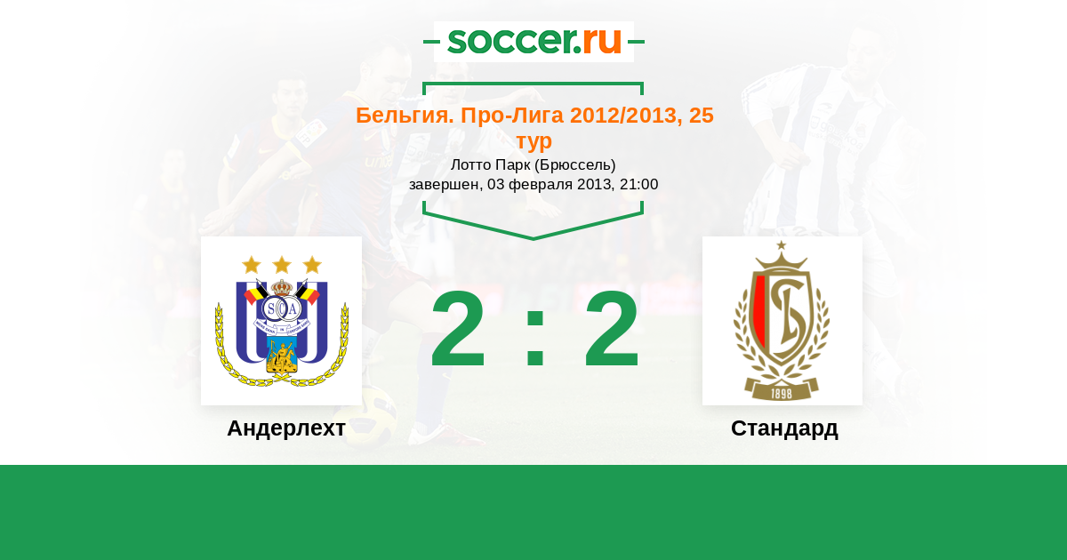 Бельгия. Про-Лига 12.02.2012 Стандард Логотип футбольный клуб Стандард (Льеж) 1:2 Логотип футбольный клуб Андерлехт (Брюссель) Андерлехт