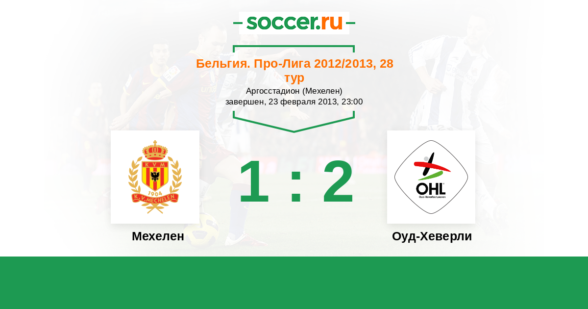 Бельгия. Про-Лига 20.04.2013 Мехелен Логотип футбольный клуб Мехелен 1:5 Логотип футбольный клуб Оуд-Хеверли (Левен) Оуд-Хеверли