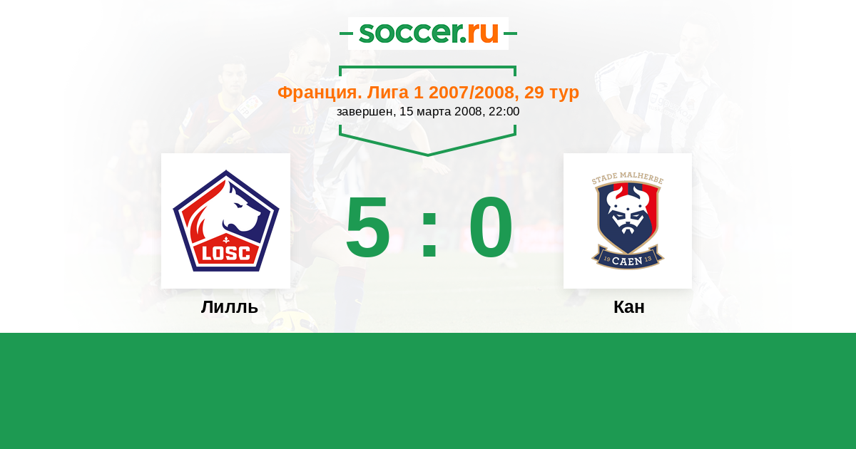 Франция. Лига 1 20.10.2007 Кан Логотип футбольный клуб Кан 1:0 Логотип футбольный клуб Лилль Лилль