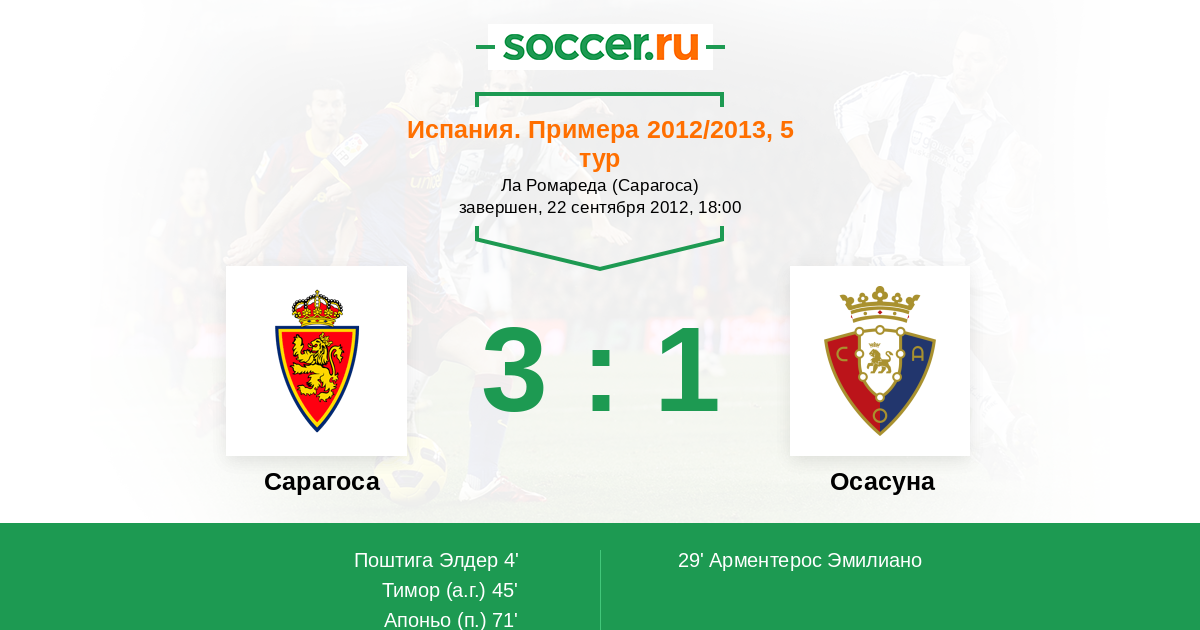 Протокол матча Сарагоса против Осасуна