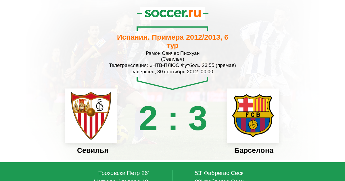 89' (2:2) Фабрегас Сеск (4) (Месси Лионель (10))