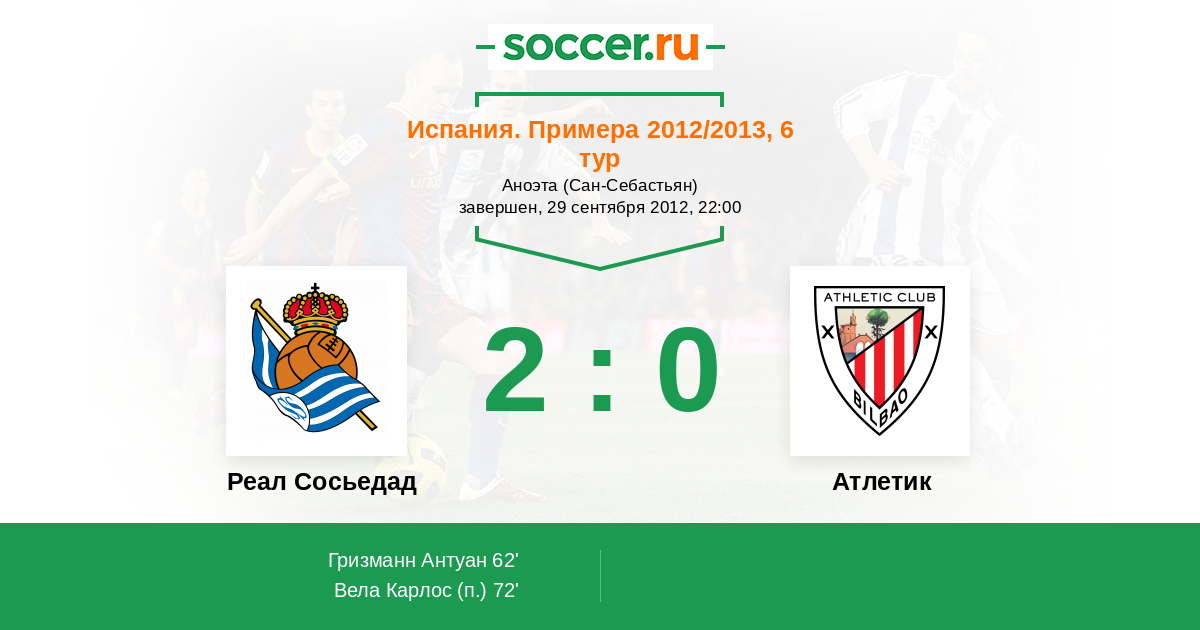 62' (1:0) Гризманн Антуан (7) (Агиррече Иманол (9))