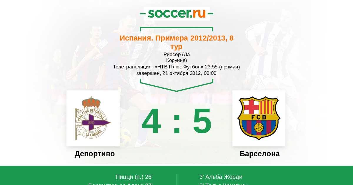 8' (0:2) Тельо Кристиан (37) (Месси Лионель (10))