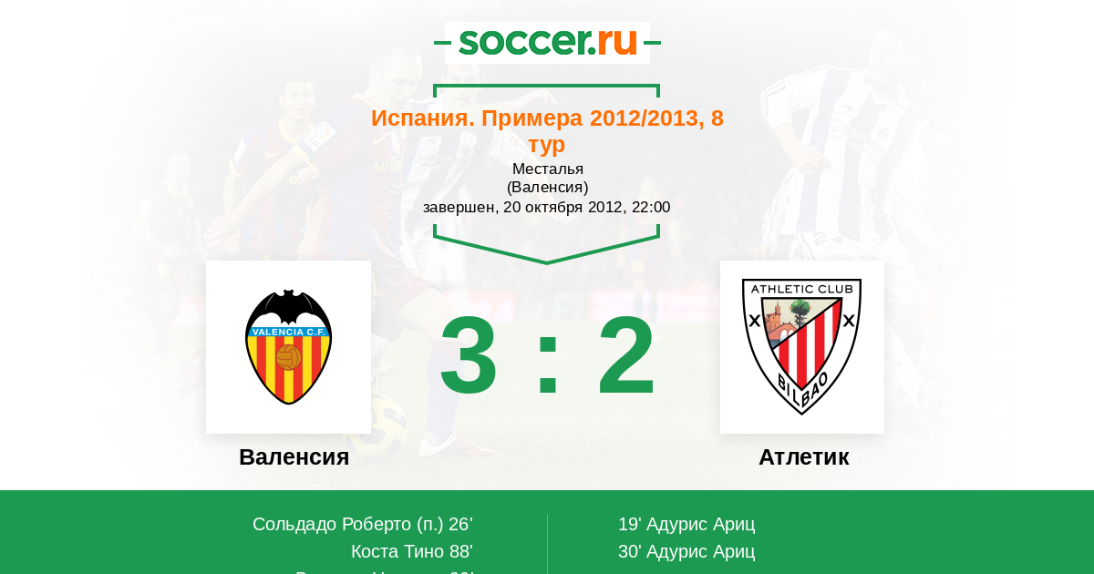 Протокол матча Валенсия против Атлетик