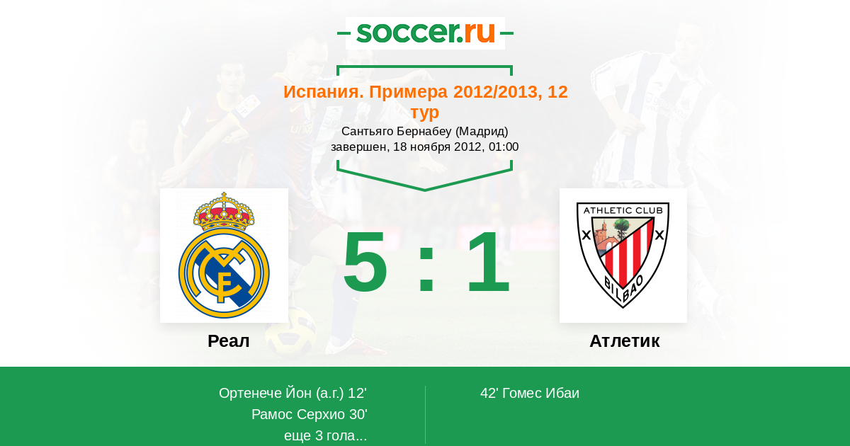 Протокол матча Реал против Атлетик