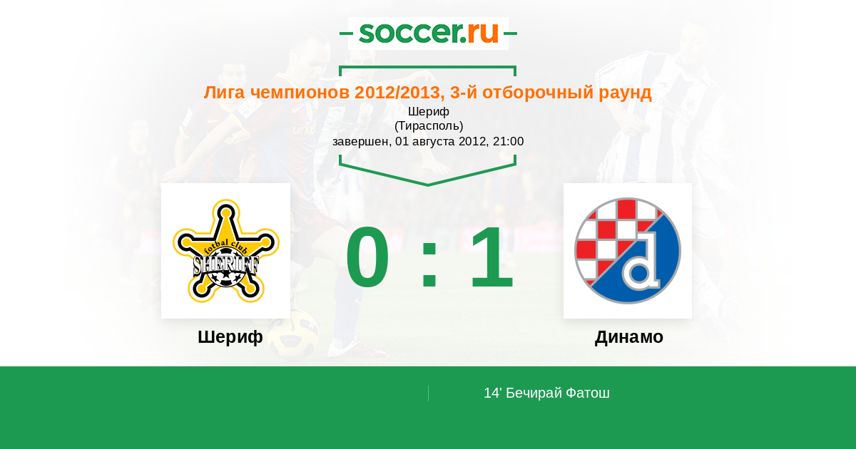 14' (0:1) Бечирай Фатош (21) (Бадель Милан)