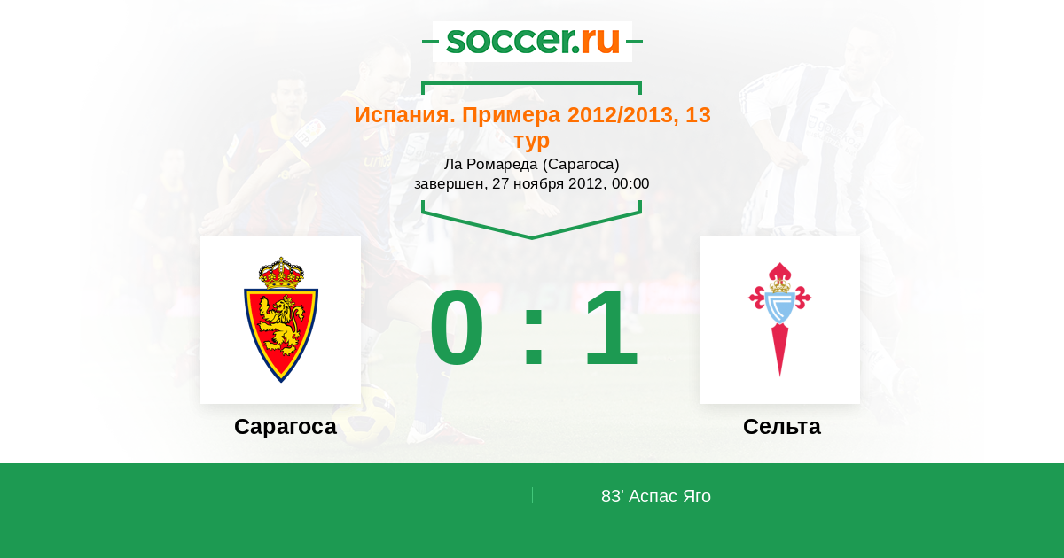 Протокол матча Сарагоса против Сельта