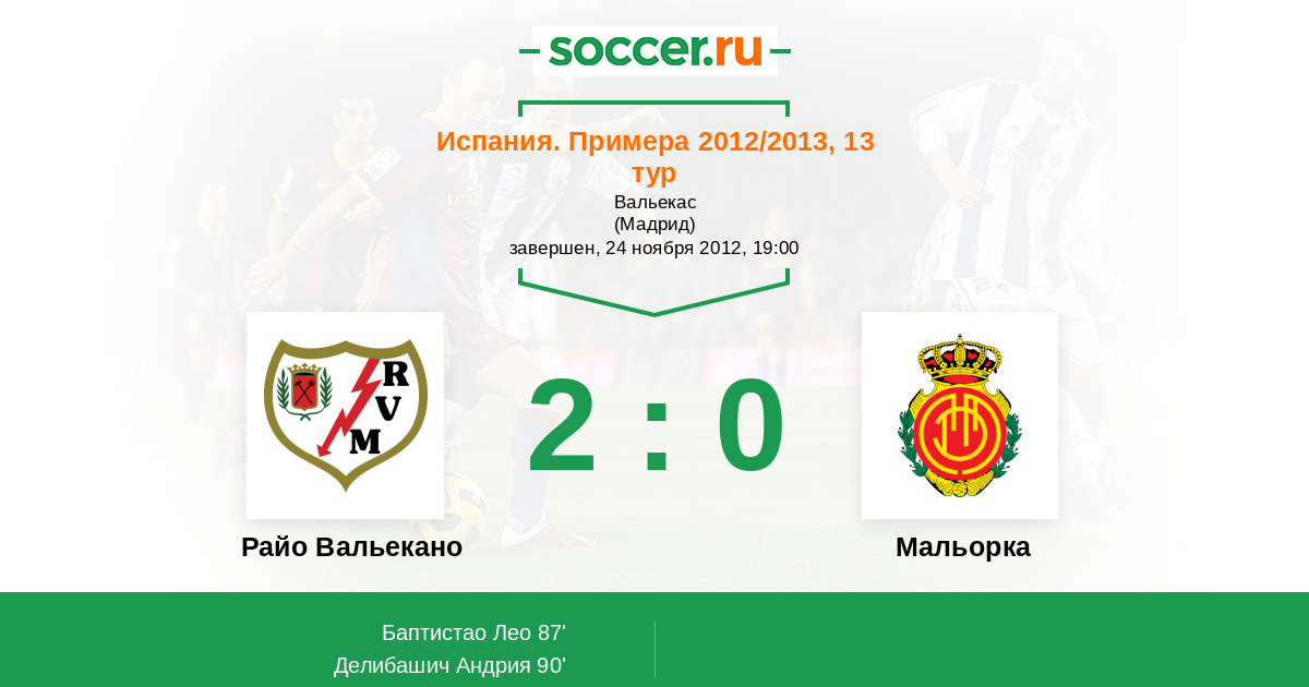 Протокол матча Райо Вальекано против Мальорка