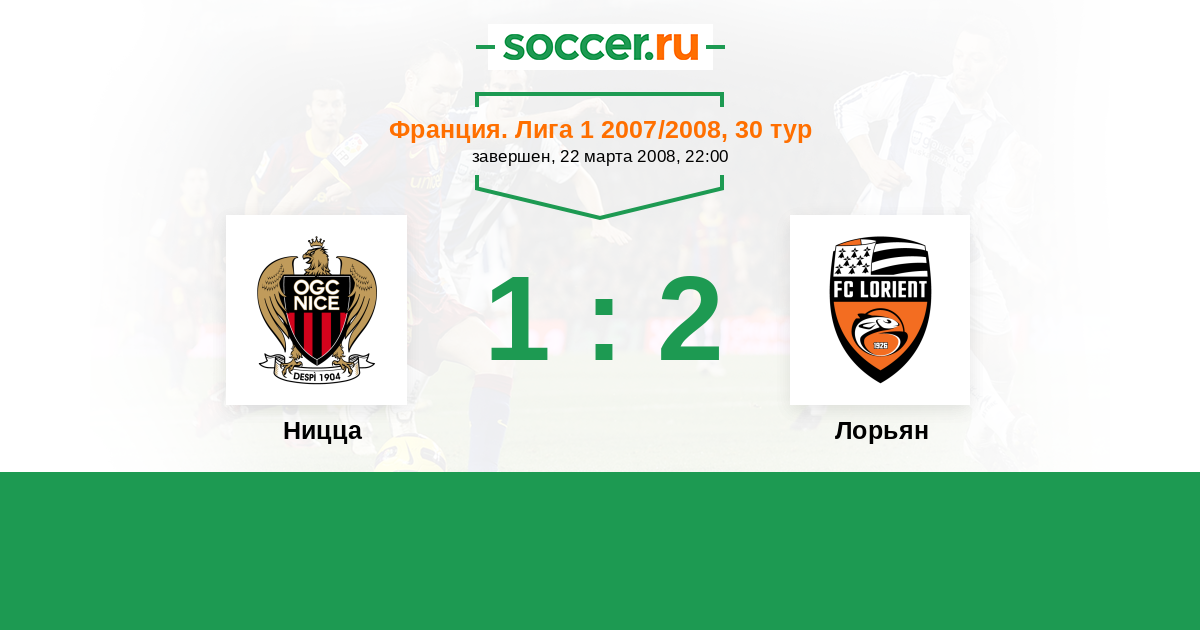 Франция. Лига 1 27.10.2007 Лорьян Логотип футбольный клуб Лорьян 0:0 Логотип футбольный клуб Ницца Ницца