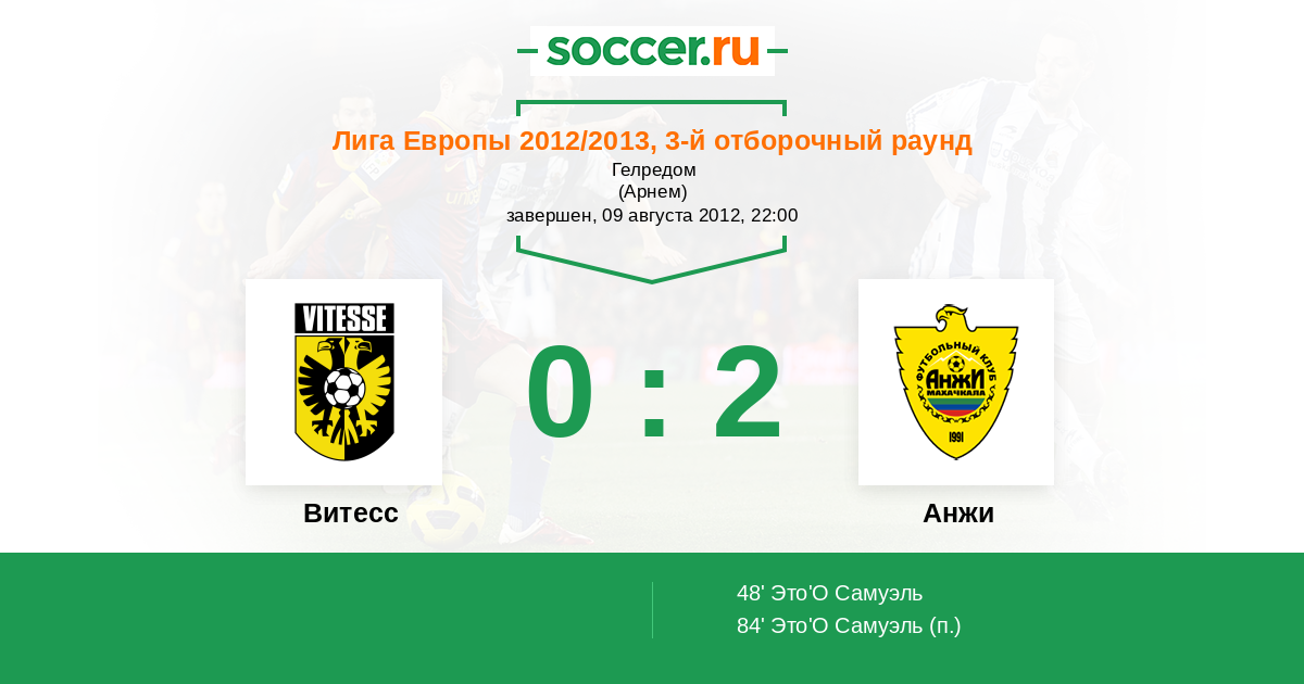 Протокол матча Витесс против Анжи