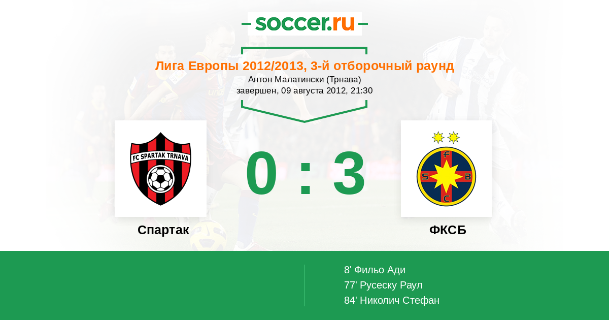 Протокол матча Спартак против Стяуа