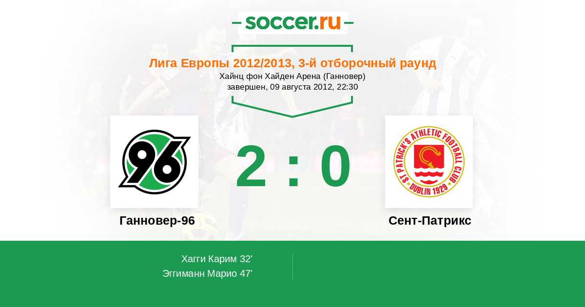 Протокол матча Ганновер-96 против Сент-Патрикс