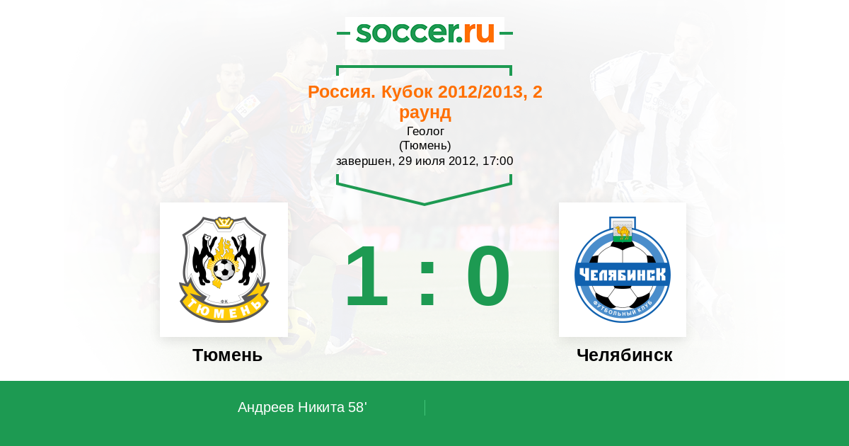 Протокол матча Тюмень против Челябинск