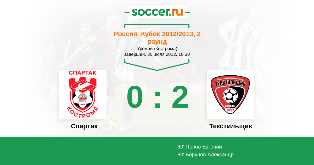 Протокол матча Спартак Кострома против Текстильщик