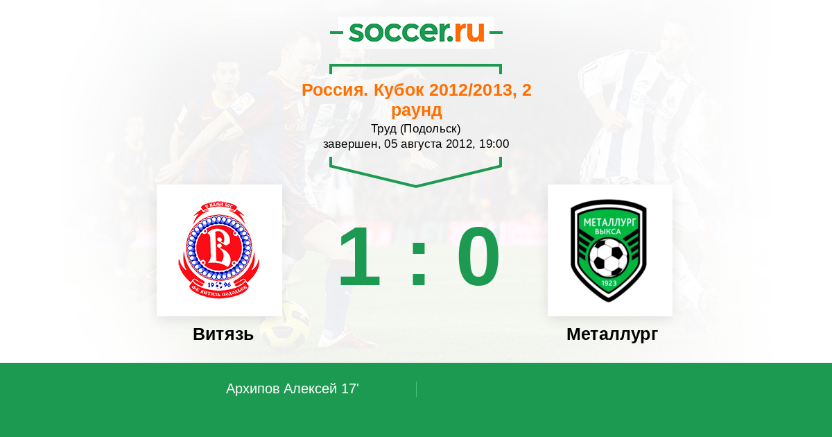 Протокол матча Витязь против Металлург